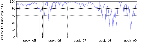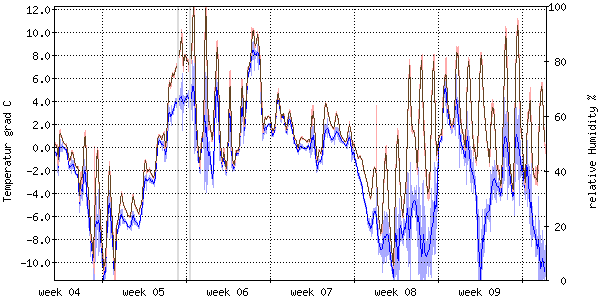 Der blaue Graph zeigt relative Feuchtigkeit. |