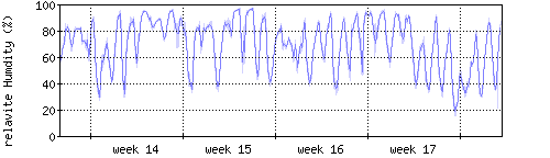 Der blaue Graph zeigt relative Feuchtigkeit. |