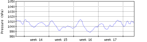 Der blaue Graph zeigt den mittleren Luftdruck, der Bereich zwischen grösstem und kleinstem Druck während des Messintervals ist in hellblau dargestellt. |