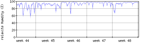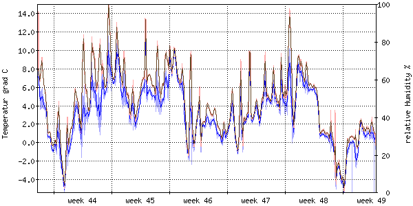 Der blaue Graph zeigt relative Feuchtigkeit. |