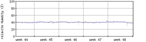 Der blaue Graph zeigt relative Innenfeuchtigkeit. |