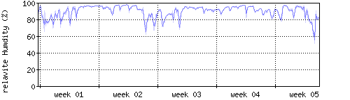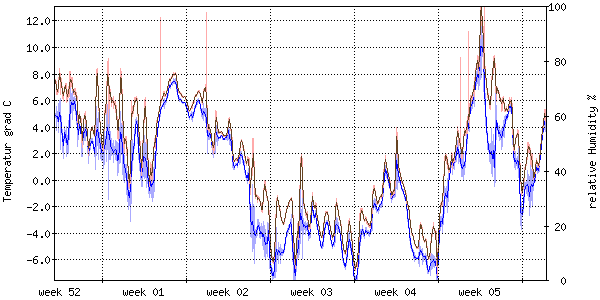 Der blaue Graph zeigt relative Feuchtigkeit. |