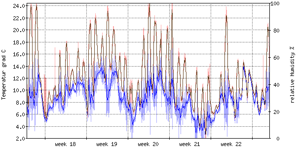 Der blaue Graph zeigt relative Feuchtigkeit. |