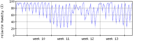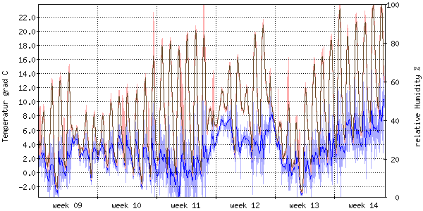 Der blaue Graph zeigt relative Feuchtigkeit. |