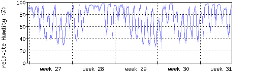 Der blaue Graph zeigt relative Feuchtigkeit. |