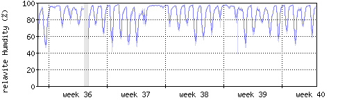 Der blaue Graph zeigt relative Feuchtigkeit. |