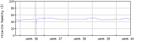 Der blaue Graph zeigt relative Innenfeuchtigkeit. |