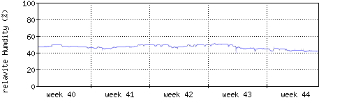 Der blaue Graph zeigt relative Innenfeuchtigkeit. |