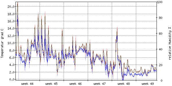 Der blaue Graph zeigt relative Feuchtigkeit. |