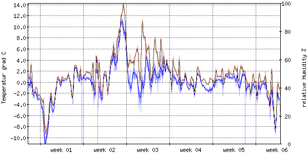 Der blaue Graph zeigt relative Feuchtigkeit. |