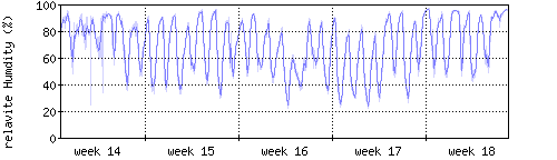Der blaue Graph zeigt relative Feuchtigkeit. |