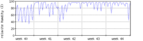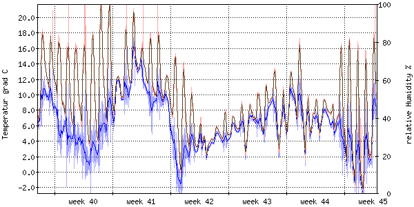 Der blaue Graph zeigt relative Feuchtigkeit. |