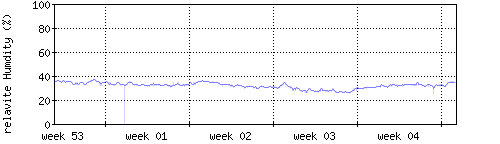 Der blaue Graph zeigt relative Innenfeuchtigkeit. |