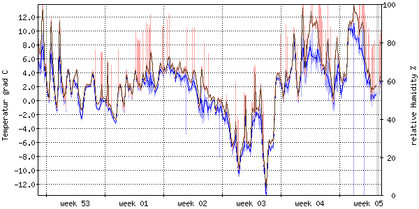Der blaue Graph zeigt relative Feuchtigkeit. |