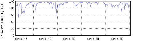 Der blaue Graph zeigt relative Feuchtigkeit. |