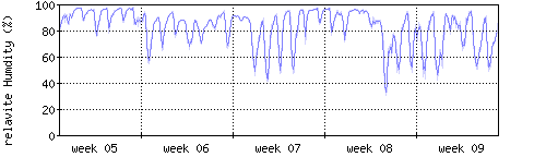 Der blaue Graph zeigt relative Feuchtigkeit. |