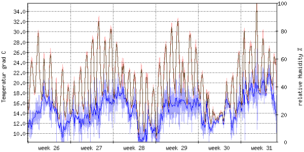 Der blaue Graph zeigt relative Feuchtigkeit. |