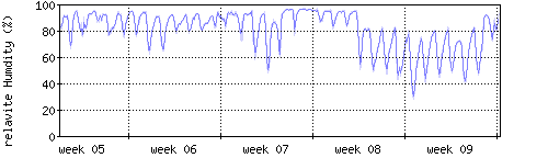 Der blaue Graph zeigt relative Feuchtigkeit. |