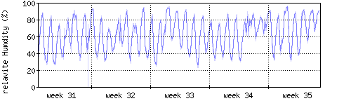 Der blaue Graph zeigt relative Feuchtigkeit. |