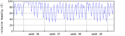 Der blaue Graph zeigt relative Feuchtigkeit. |