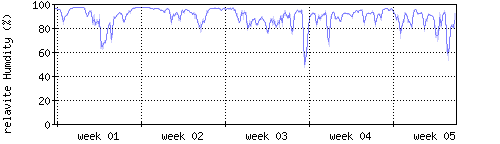 Der blaue Graph zeigt relative Feuchtigkeit. |