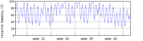 Der blaue Graph zeigt relative Feuchtigkeit. |