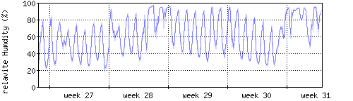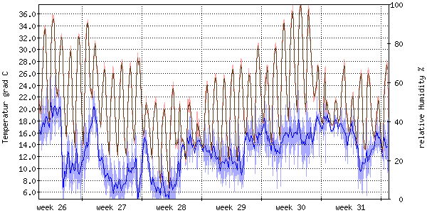 Der blaue Graph zeigt relative Feuchtigkeit. |