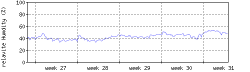 Der blaue Graph zeigt relative Innenfeuchtigkeit. |