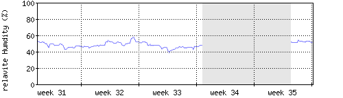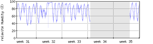 Der blaue Graph zeigt relative Feuchtigkeit. |