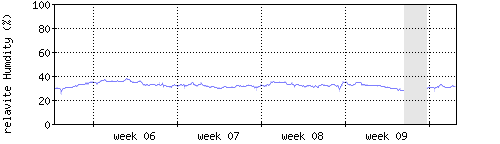 Der blaue Graph zeigt relative Innenfeuchtigkeit. |