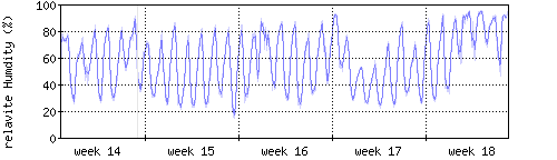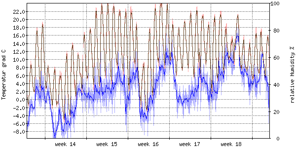 Der blaue Graph zeigt relative Feuchtigkeit. |