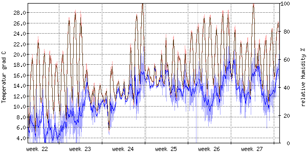 Der blaue Graph zeigt relative Feuchtigkeit. |