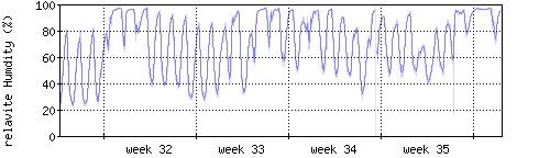 Der blaue Graph zeigt relative Feuchtigkeit. |