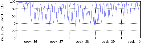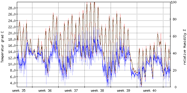 Der blaue Graph zeigt relative Feuchtigkeit. |