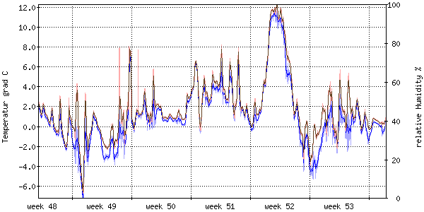 Der blaue Graph zeigt relative Feuchtigkeit. |