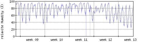 Der blaue Graph zeigt relative Feuchtigkeit. |
