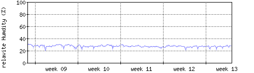 Der blaue Graph zeigt relative Innenfeuchtigkeit. |