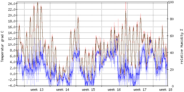 Der blaue Graph zeigt relative Feuchtigkeit. |
