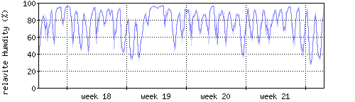 Der blaue Graph zeigt relative Feuchtigkeit. |