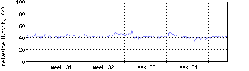 Der blaue Graph zeigt relative Innenfeuchtigkeit. |