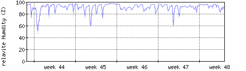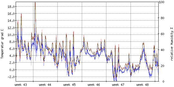 Der blaue Graph zeigt relative Feuchtigkeit. |