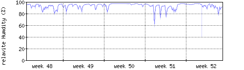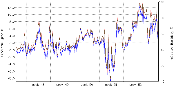 Der blaue Graph zeigt relative Feuchtigkeit. |