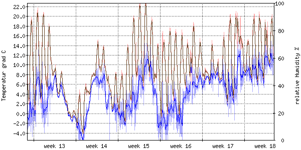 Der blaue Graph zeigt relative Feuchtigkeit. |