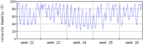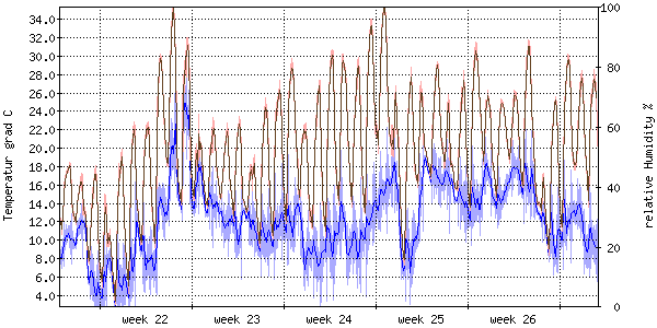Der blaue Graph zeigt relative Feuchtigkeit. |