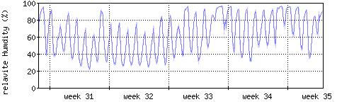 Der blaue Graph zeigt relative Feuchtigkeit. |