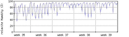 Der blaue Graph zeigt relative Feuchtigkeit. |