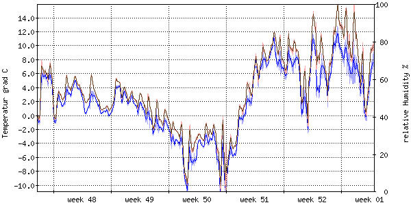 Der blaue Graph zeigt relative Feuchtigkeit. |