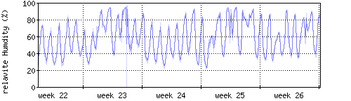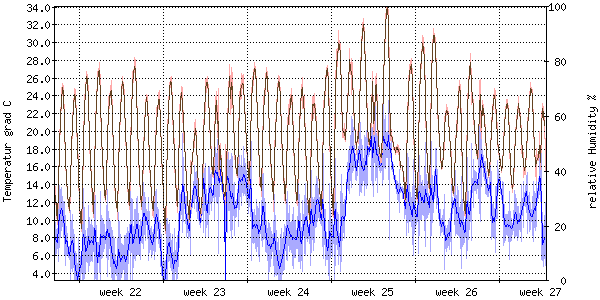 Der blaue Graph zeigt relative Feuchtigkeit. |