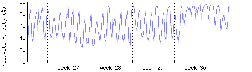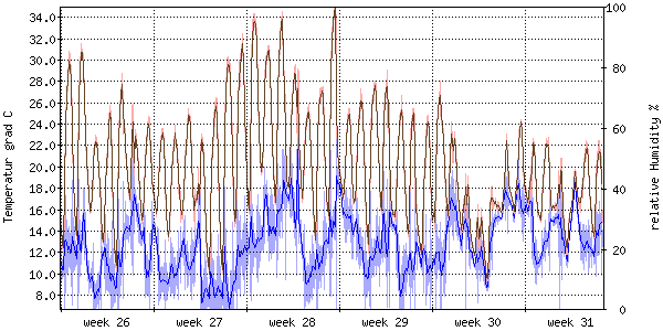 Der blaue Graph zeigt relative Feuchtigkeit. |