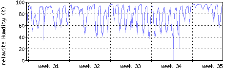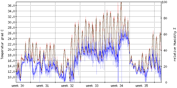 Der blaue Graph zeigt relative Feuchtigkeit. |